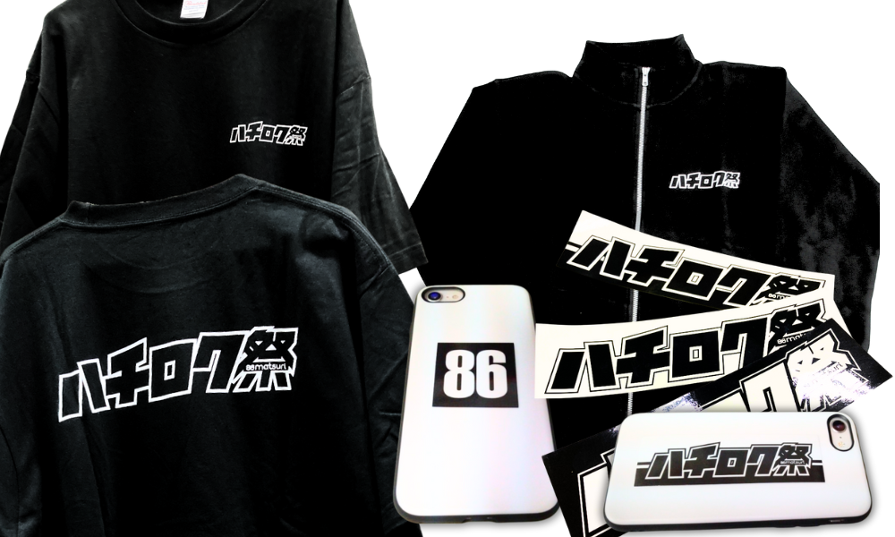 毎年大人気のオリジナルステッカーに加え、今年も数量限定の「ハチロク祭ロゴ入りTシャツ」「ジャージジャケット」「マスク」を販売します。会場でしか手に入らない激レアアイテムばかり!ご来場の記念やお土産に、ぜひお買い求めください。