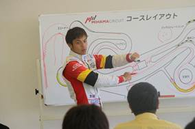 複合コーナーやタイトなヘアピンコーナー多い美浜サーキット。各講師の指摘するポイントは、ズバリ「頑張りすぎないこと!」。きっちりとブレーキングして丁寧にコーナーを回ることが重要だという。とくに複合コーナーはライン取りが重要となり、気合の突っ込みや早すぎるアクセルオンはタイムに繋がらないとのこと。座学を受ける受講生たちの表情も真剣だった。